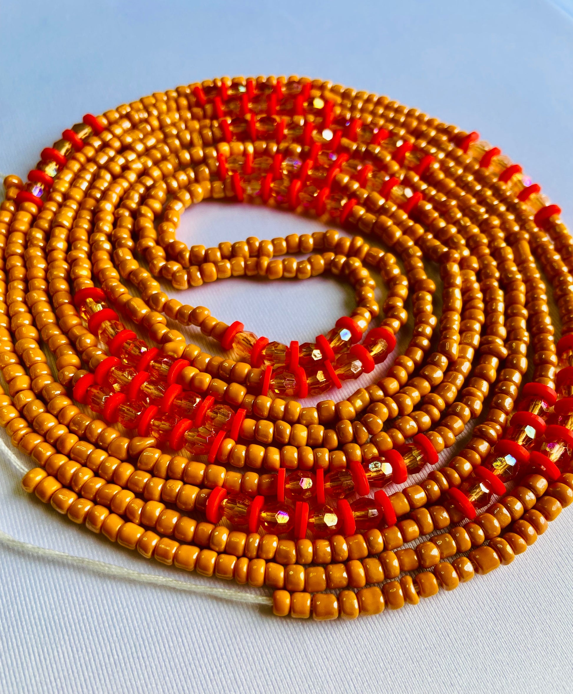50 inches of orange beads accented with orange iridescent faceted beads and red spacers. Can fit up to a 3x.